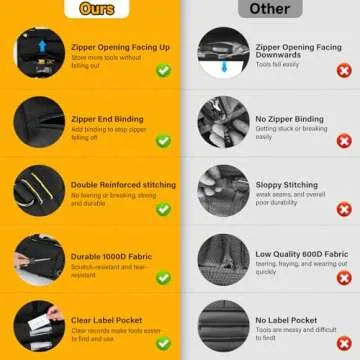 Each of the four fixed large compartments is equipped with a clear label pocket, allowing you to categorize your tools seamlessly. No more rummaging through a messy bag; you can find exactly what you need at a glance, enabling you to focus on the task at hand instead of searching for tools. This significant feature is especially beneficial for professionals and DIY enthusiasts who prioritize efficiency.