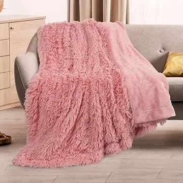 TOONOW Faux Fur Throw Blanket,Super Soft Fuzzy Blanket for Couch Sofa Bed,Fluffy Blankets and Throws for Women,50x60 Inches,Pink