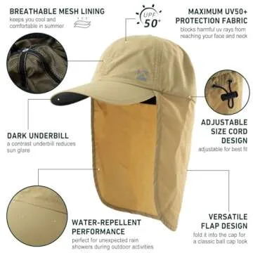 neck flap for comprehensive sun protection or tuck it away for a