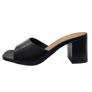 Introducing the TOP Moda Women’s Slip On Slide Open Toe Heeled Sandals, a perfect blend of style and comfort designed for modern women. These sandals feature a **contoured thick strap** elegantly crafted to provide both support and ease while ensuring a chic appearance. The **medium high heel** stands at approximately **2.5 inches**, allowing you to strut confidently without sacrificing stability. With a **chunky heel** design, you can enjoy not just height but also enhanced stability for all-day wear....