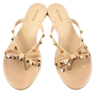 TOP Moda Womens Studded Jelly Flip Flops Sandals with Bow, Nude, 6