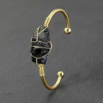 Why You Will Love This Product:Imagine slipping on a bracelet that not only elevates your style but also works to enhance your emotional balance. The soothing properties of black tourmaline help reduce negative emotions, creating a tranquil state as you go about your day. This fusion of fashion and functionality means you don’t have to sacrifice one for the other. With the Top Plaza Women's Golden Cuff Bangle, you can truly express yourself while embracing the holistic benefits that naturally come with it.