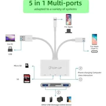 Top-Up 5-in-1 SD Card Reader - USB 3.0 OTG Adapter & Card Reader for iPhone 16 15 14 13/iPad/Android/Mac/Camera with Micro SD & SD Card Slots, Fast Charging Ports, Supports SD/Micro SD/SDHC/SDXC/MMC