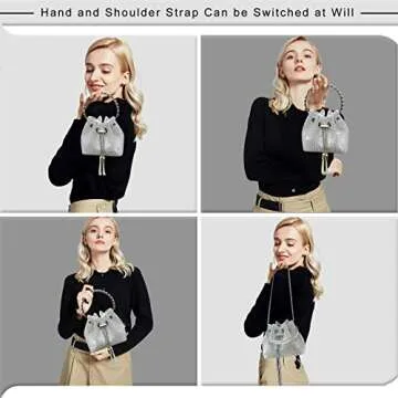 TOPALL Upgrade Rhinestone Evening Bag Bling Purse Sparkly Diamond Silver Clutch Purses for Women Party Club Wedding Prom (Large)