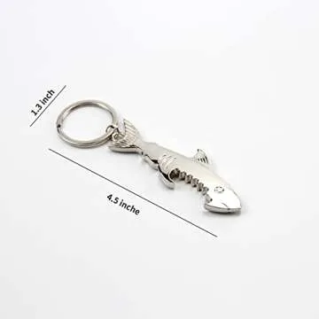 TOPASION Creative Metal Corkscrew Shark Beer Bottle Opener Keychain Pendant