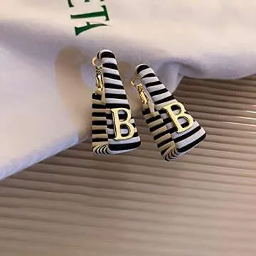 The beautiful alloy letter 'B' adds an eye-catching metallic texture, creating a chic statement piece that is perfect for both casual and business occasions. With a size of 1.7*0.9 inches and weighing only 15.9g, these earrings are lightweight, ensuring that you can wear them comfortably all day long.
