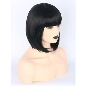 Topcosplay Womens Bob Hair Wigs Short Black Flat Bangs Cosplay Halloween Costume Wigs