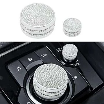 TopDall Media Control Volume Knob Bling Crystal Shiny Accessory Interior Cover Compatible for Mazda
