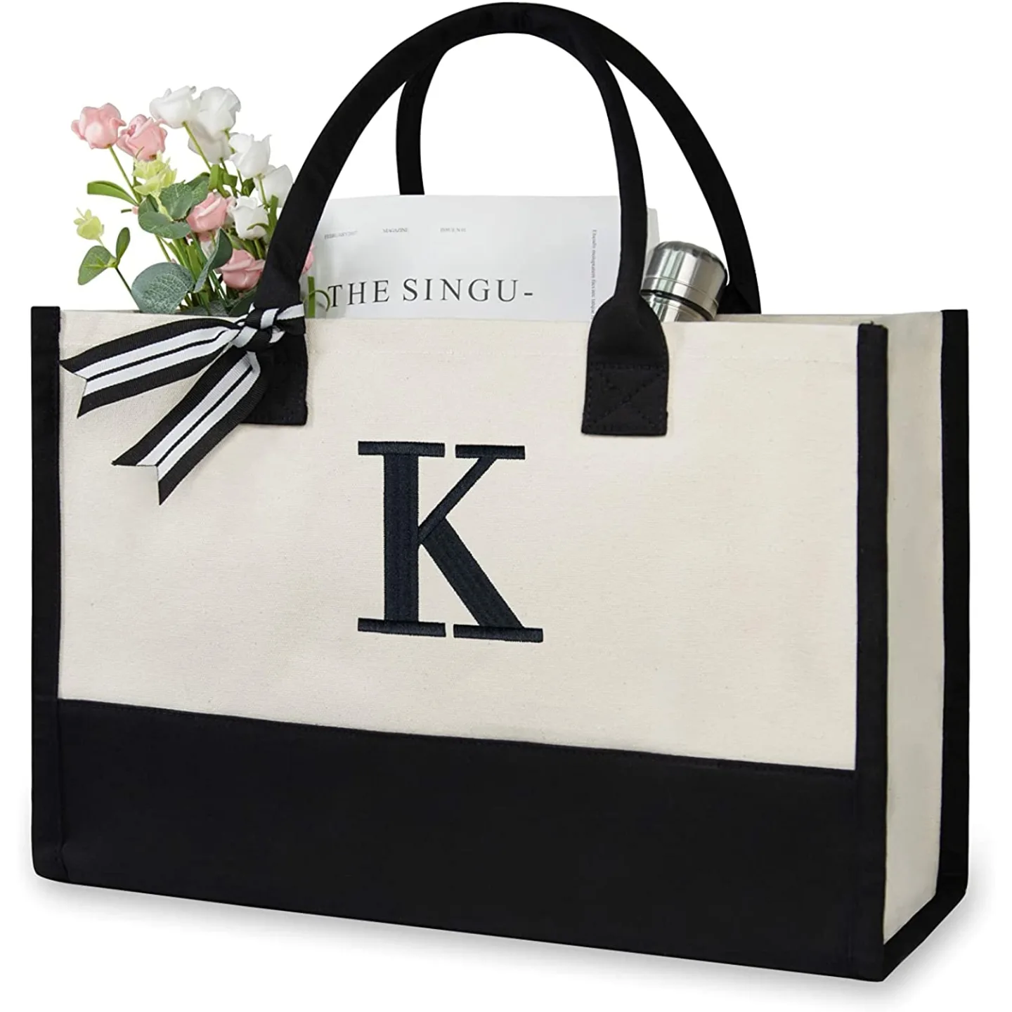 TOPDesign Personalized Initial Canvas Beach Bag - Unique Monogrammed Tote for Women