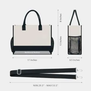 For added convenience, this tote bag boasts multiple pockets—three divided open pockets for quick access to smaller items like your cellphone and wallet, along with two side pockets designed specifically for keys or water bottles. An extra makeup bag (measuring 10 x 5.5 x 3.5 inches) is included, allowing you to store your cosmetics in style. The zip-top closure provides extra security, while the reinforced seams guarantee additional strength against daily wear. Plus, a removable thickened PE pad helps keep the bag upright, no matter how much you carry inside.