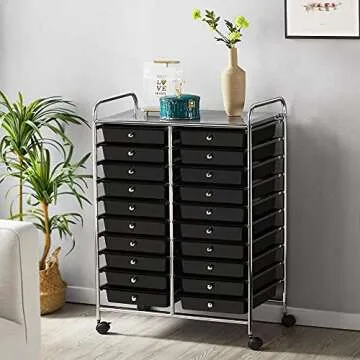 Topeakmart Utility Cart with 20 Drawers Rolling Cart Organizer Plastic Storage Drawers Craft Trolley 360 Degree Castor Wheels, Black