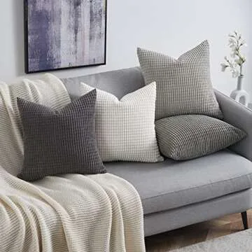 Show moreTransform your living space with the luxurious Topfinel Grey Couch Pillow Covers, a stunning set of 4 decorative pillowcases measuring 45x45 cm (18 inches). Crafted from soft, eco-friendly corduroy, these pillow covers offer exceptional durability and a gentle touch, making them perfect for homes with children and pets. Their versatile design marries style with practicality - ideal for enhancing the aesthetic of your living room, bedroom, or any cozy nook.