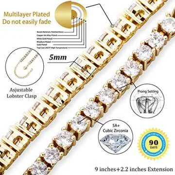 TOPGRILLZ 3-6mm Tennis Chain Anklet with Extension Bracelet for Women, 14K Gold Plated CZ Diamond Fashion Foot Jewelry Gifts (5mm Gold,9)