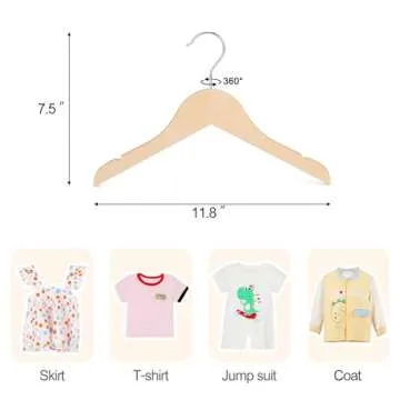 TOPIA HANGER Unfinished/Natural Kids Children Baby Wood Wooden Clothes Dress Shirt Hangers with No Painting - 360°Stronger Flexible Hook- Extra Smoothly Cut Notches, 10 Pack CT09N