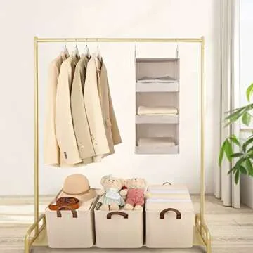 TOPIA HOME 3-Shelf Hanging Closet Organizer 2 Pack, Thickened Fabric Hanging Shelves, Closet Organization, Hanging Organizer for Kids, Hat, Bag, RV, Nursery, Sweater, 12.2" Wx 12.2" Dx31 H, Beige