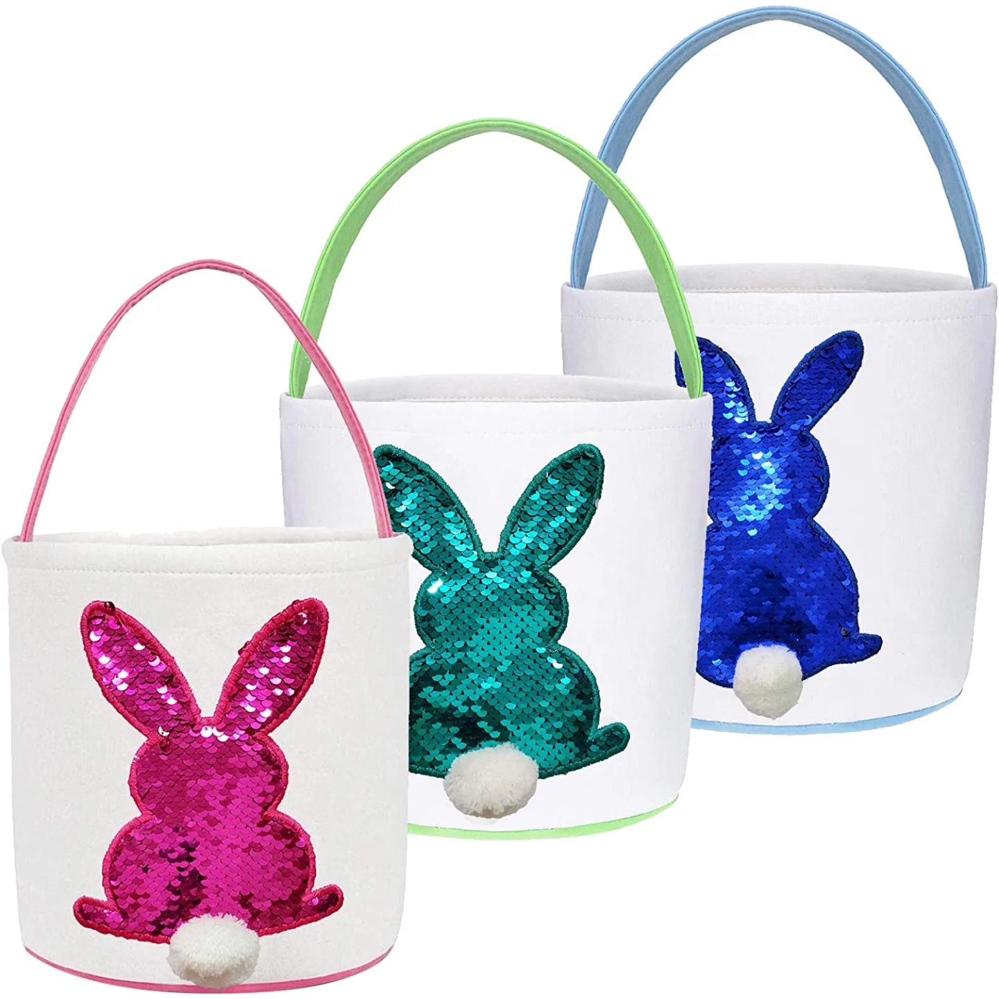 TOPLEE 3 Pack Easter Eggs Hunt Baskets for Kids - Bunny Ear Bags