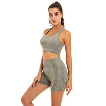 Toplook Women Seamless Yoga Workout Set 2 Piece Outfits Gym Shorts Sports Bra (Khaki Green, Small)