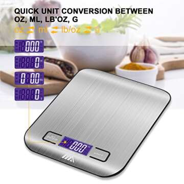 Toplus Digital Kitchen Scale Food Scale, Multifunction Stainless Steel Easy to Clean 11 lb 5 kg, Silver(Batteries Included)