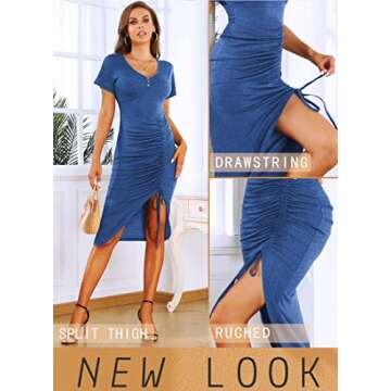 TOPMELON Ruched Tshirt Dress Summer Dresses for Women Work Casual with Sleeves Drawstring Dress Irregular Hem Split Sexy Dresses for Curvy Navy Blue Large