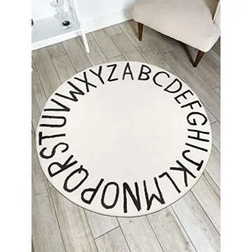 Topotdor Round Kids Play Rug Alphabet Nursery Mat Soft Crawling Play Mat 71 inch Beige