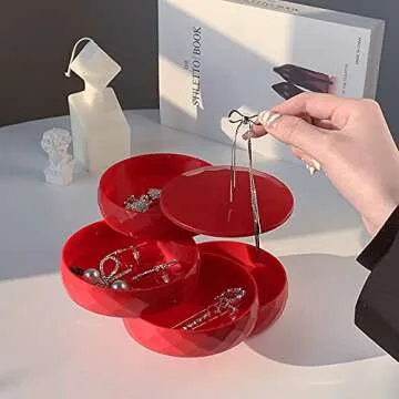 Topotter 4 Layers Jewelry Organizer Box, 360°Rotating Showcase Storage Organizer Rings Necklace Bracelet Earrings Holder, Jewelry Boxes & Organizers, Gift for Girls Mother Women(Red)