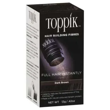 Show moreIf you're on a quest to reclaim your confidence due to thinning hair or sparse areas that leave you feeling self-conscious, look no further than Toppik Hair Building Fibers in Dark Brown. This premium solution contains 0.42 oz of colored keratin hair fibers, meticulously designed to blend seamlessly with your natural hair color. The miracle is in its ability to effectively cover fine hair, scalp show-through, and even bald spots caused by hair loss, giving the appearance of thicker, more voluminous hair that can elevate your self-esteem significantly.