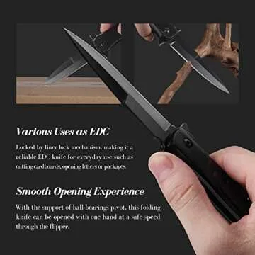Introducing the Tops Home Pocket Knife for Men, your ultimate everyday carry (EDC) companion designed for those who appreciate functionality and style! This remarkable knife features a substantial 3.43" blade crafted from high-quality stainless steel, renowned for its impressive sharpness and durability. Coupled with a sleek black anodized coating, it not only enhances corrosion resistance but also offers an impressive aesthetic appeal, making it perfect for anyone who values...