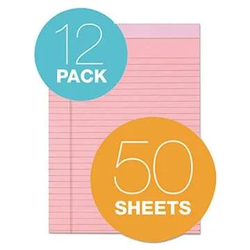 TOPS Prism Writing Pads, 8-1/2" x 11-3/4", Legal Rule, Pink, Perforated, 50 Sheets, 12 Pack (63150)