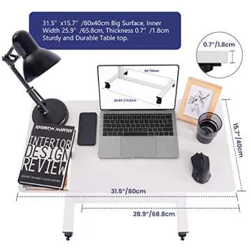 TOPSKY Electric Height Adjustable Overbed Bedside Table with Wheels for Home Office Use (White + White Frame)