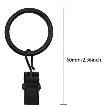Topspeeder 46 Pack Nickel Curtain Rings with Clips 1 inch Internal Diameter Decorative Drapery Rustproof Vintage Compatible with up to 5/8 inch Rod Black