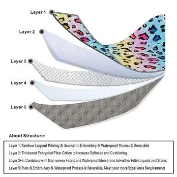 Topthumbs Waterproof Dog Bed Cover 52x82inch Reversible Pad Reusable Camping Mat for Kids/Pet/Dog/Cat Washable Geometric Embroidery Blanket Patchwork Rainbow Leopard Printed+Gray