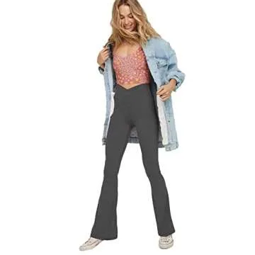 TOPYOGAS Women's Casual Bootleg Yoga Pants V Crossover High Waisted Flare Workout Pants Leggings Dark Grey
