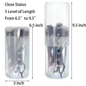What sets the TOPZEA brush holders apart is their adjustable height. Each case starts at a compact 6-1/4 inches, and you can easily extend it to a maximum of 9.5 inches. This adaptability makes them perfect for holding a variety of brush sizes, as well as other cosmetics like mascaras, eyeliners, and glosses. With five levels available, you can customize the height to fit your makeup routine and essentials, ensuring that all your tools are readily accessible.
