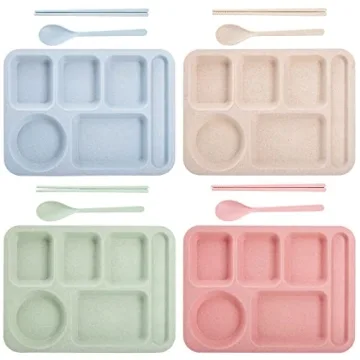 Show more Introducing the TOPZEA Unbreakable Divided Plates Set - the perfect dining solution for families seeking convenience without compromising quality! This exceptional set includes four beautifully colored plates in pink, beige, green, and blue, each carefully designed to measure a generous 14 inches in length and 10.5 inches in width. Crafted from robust wheat straw and food-grade polypropylene, these plates are as strong and durable as they are lightweight and BPA-free, ensuring safe and healthy meals for your loved ones. Whether it’s a casual family dinner or a fun outing, these plates are designed to enhance your dining experience effortlessly.