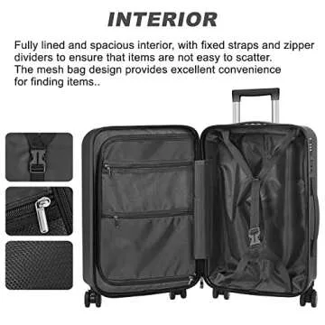 TopZK JZRSuitcase Carry On Luggage ABS+PC Suitcase with Spinner Wheels TSA Lock 20in 24in 28in (black, 20in)