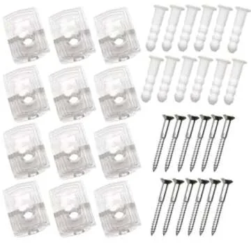 Show moreIntroducing the Topzone 1/4" Heavy Duty Crystal Clear Plastic Mirror Holder Clips - the ultimate solution for secure and seamless mirror installation. These innovative clips are designed to hold mirrors up to 25 pounds with ease, ensuring that your reflective decor remains firmly in place. Made from durable, high-quality plastic, each clip blends seamlessly into any setting, providing a clean and elegant look without compromising on strength. Whether you are a DIY enthusiast or a professional looking for reliable mounting solutions, these clips are an essential addition to your toolkit.