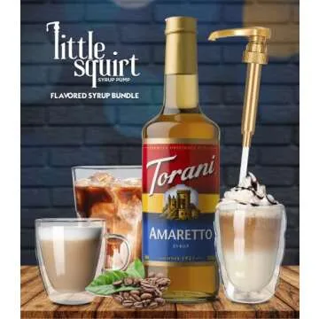When comparing Torani Amaretto Syrup with competitors, this product stands out for its superior flavor profile, convenience of use with the Little Squirt Syrup Pump, and robust design. Other brands may offer similar syrups, but few match the precise portion control and moisture protection provided by Torani. Its innovation allows for a mess-free experience while maintaining the syrup's integrity, making it the go-to choice for beverage aficionados.