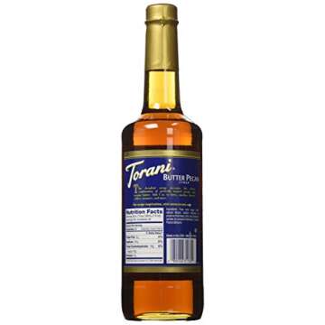 Show moreIndulge in the rich and buttery taste of Torani Butter Pecan Syrup in a generous 750mL bottle, designed to enhance your coffee experience and elevate desserts alike. This syrup, crafted by the renowned brand Torani, is perfect for creating delightful coffeehouse beverages right in the comfort of your own home. With its smooth texture and irresistible flavor, it's no wonder that this syrup has been a favorite among coffee lovers for more than two decades.