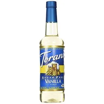 Torani Sugar Free Vanilla Flavoring Syrup, 750mL (25.4 Fl Oz) Bottle Individually Boxed, With Black Pump