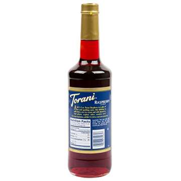 Show moreIndulge in the delightful taste of Torani Raspberry Syrup, a premium syrup designed to elevate your beverages and desserts! With a generous 25.4 fl oz bottle, this syrup is packed with bold, fresh raspberry flavor that is both intense and refreshing. Crafted with all-natural ingredients, it is the perfect solution for those looking to create delicious raspberry-flavored drinks at home without the hefty price tag of store-bought options. Whether you’re a fan of iced teas, sodas, or simply wanting to add a fruity twist to your desserts, this kosher-certified syrup offers versatility and vibrant flavor that stands out in any application.