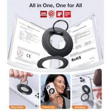 TORRAS 2025 Newest Thin Fit for MagSafe Phone Grip Ring Holder [Dual-Ring] Compatible with Popsocket MagSafe Kickstand Magnetic for iPhone 16/15/14/13/12/11 Samsung, Google Accessories, Black