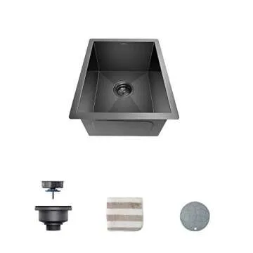 Show more If you are in search of a premium sink that combines aesthetics with top-notch functionality, the TORVA PVD Coated Gunmetal Sink is your go-to choice. Crafted from high-grade 16-gauge SUS304 stainless steel, this sink not only offers unparalleled durability but also presents a sleek, modern look that enriches any kitchen design. The undermount installation maximizes your counter space, creating a seamless transition that enhances the overall aesthetic of your kitchen.