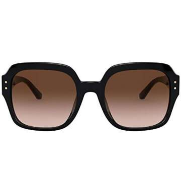 Show moreIntroducing the stunning Tory Burch TY7143U Fashion Square Sunglasses, the epitome of style and sophistication. Crafted from premium materials, these sunglasses showcase a sleek black frame that complements various face shapes and personal styles. The dark brown gradient lenses not only provide optimal protection against harmful UV rays but also elevate your fashion statement. With a generous lens width of 56mm and a temple length of 140mm, these sunglasses ensure a comfortable fitfor long periods of wear.