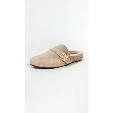 Show moreStep into effortless style and unmatched comfort with the Tory Burch Women's Mellow Sherpa Mules, available in a chic Noisette/Taupe hue. Crafted with a soft, plush sherpa material that cocoons your feet, these mules provide a luxurious feel while the robust rubber sole ensures outstanding traction and durability. The accent strap showcases a gold-tone logo emblem, adding a touch of elegance to your casual wardrobe. Perfect for any on-the-go woman, they are designed for quick slipping on and off, making them an essential addition to any outfit.
