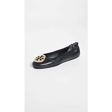 Show moreStep into elegance and comfort with the Tory Burch Women's Minnie Travel Ballet Flats. Constructed with smooth leather that sublimely melds style with functionality, these ballet flats are designed for the modern woman who seeks both sophistication and ease in her footwear. The iconic gold-tone logo emblem adds a touch of luxury, making these flats a versatile choice for both casual outings and refined events. With a flat profile and rounded toe, they provide exceptional comfort without sacrificing style, allowing you to glide effortlessly through your day.