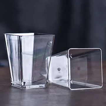 Tosnail 100 Pack 5 Oz Tall Square Clear Plastic Dessert Tumbler Cups with 100 Plastic Spoons - Great for Event and Party