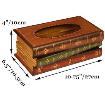 Why You Will Love This Product: The Tosnail Antique Book Tissue Holder is much more than just a container for tissues. It embodies style and practicality, enhancing your home or office decor while also ensuring that you have tissues on hand whenever needed. The joy of having a decorative yet functional piece that sparks conversation and admiration from guests makes this product a beloved addition to any space. Experience the harmony of elegance and utility with this stunning tissue holder, and let it become a cherished part of your interior design!
