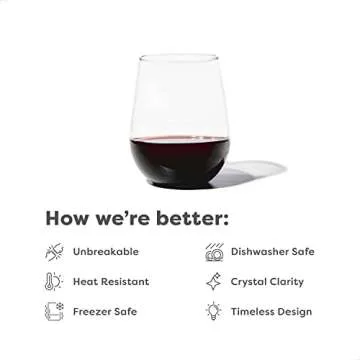 Show moreIntroducing the TOSSWARE RESERVE 16oz Stemless Wine Set of 4—where elegance meets functionality. Designed for the modern wine enthusiast, these premium quality glasses are crafted from BPA-free, unbreakable Tritan material, providing a crystal-clear glow that replicates the look and weight of glass. Ideal for any occasion, they allow you to enjoy your favorite wines, cocktails, and even desserts without the worry of fragile glassware. With a generous capacity of 16 ounces, each glass is designed to enhance your sipping experience, making it suitable for everything from casual gatherings to sophisticated engagements.