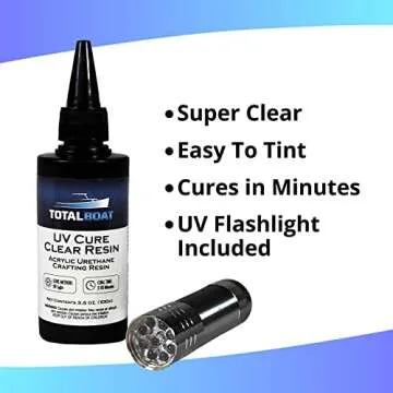 TotalBoat 200g UV Cure Clear Acrylic Resin Kit with UV Flashlight for DIY Jewelry Making, Crafts, and Protective Coatings