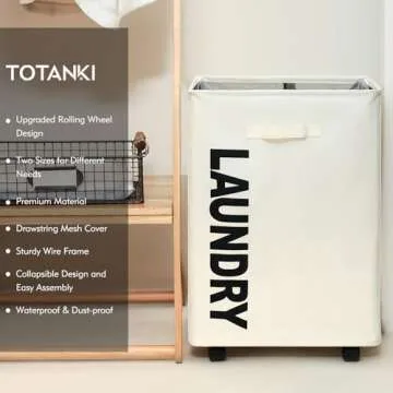 TOTANKI 22" X-Large Rolling Laundry Basket with Handle on Wheels, Foldable Laundry Hamper, Collapsible Laundry Sorter and Organizer, Tall Storage Basket Bin (Beige)